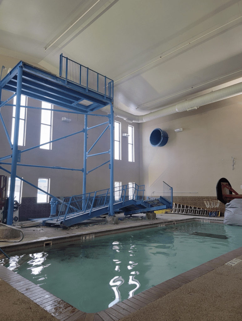 After removing an aging water slide — it went outside the building and back in — “we have major plans underway, and we are so excited to unveil our new water recreation area,” said Marybeth Anderson, director of sales and marketing.