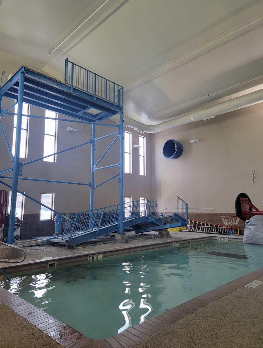 The hotel, which attracts guests from business travelers to sports teams, includes a 5,200-square-foot event center. It will receive a top-to-bottom renovation after the pool project is done.
