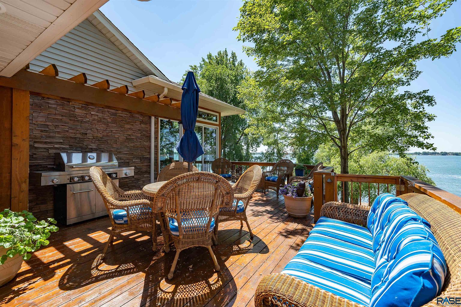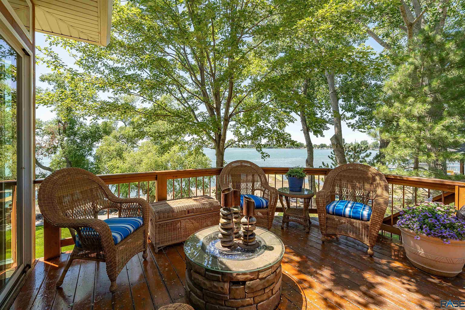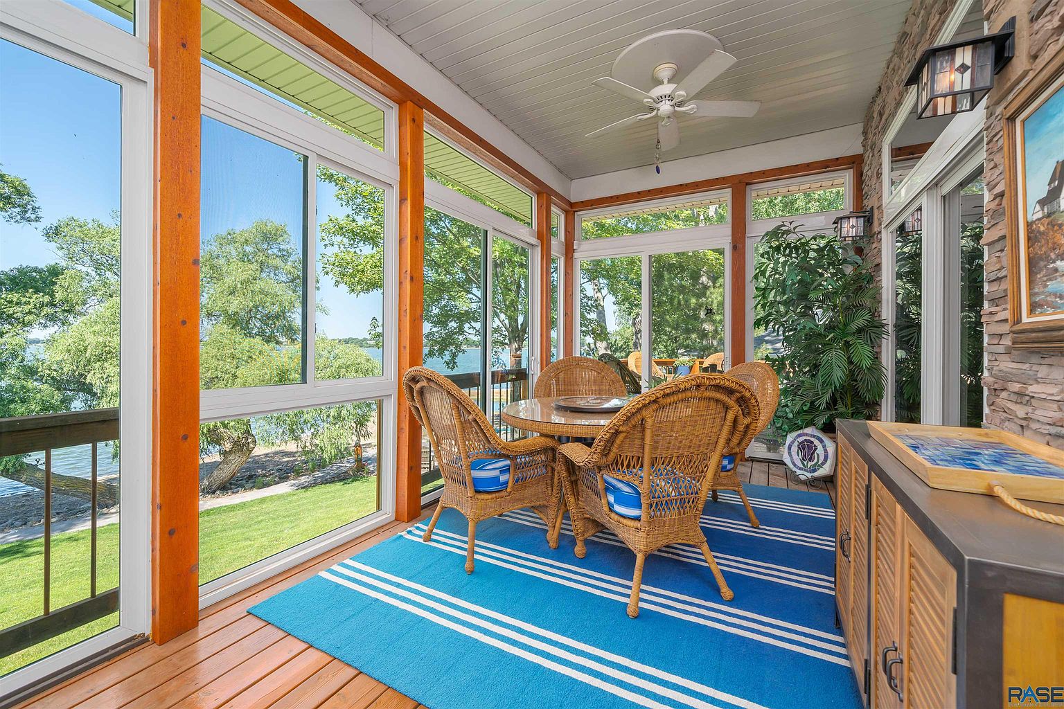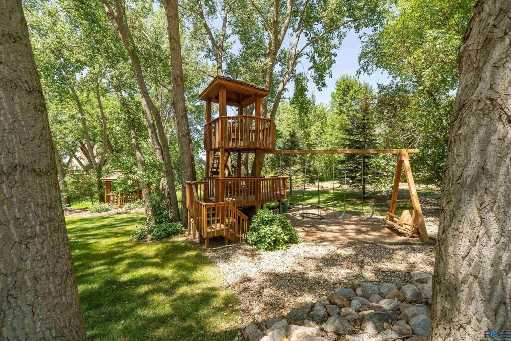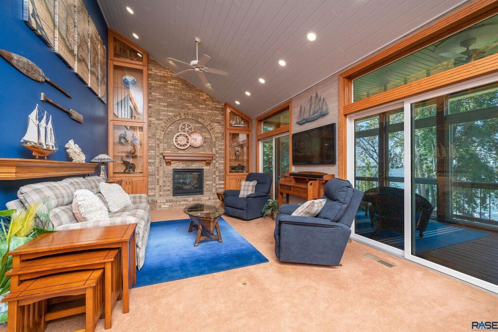 And a wraparound deck includes access to two separate three-season rooms, including one with a saltwater hot tub.