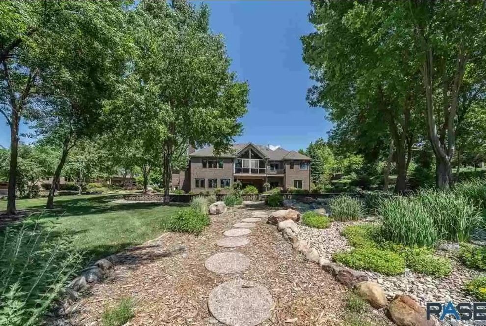 The 6,100-square-foot, all-brick ranch walkout home has four bedrooms and five bathrooms. It was built in 1997 on a 1-acre lot that overlooks the Big Sioux River. The backyard offers direct access to the city’s bike path. Features include a three-season room with floor-to-ceiling windows overlooking the landscaped backyard, 13-foot ceilings in the living room and a heated four-stall garage.