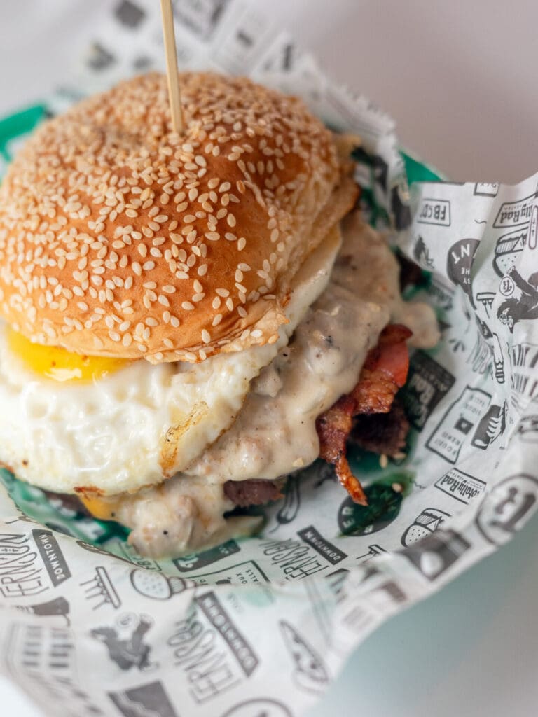 The restaurants began offering the Eggsmack breakfast menu earlier this year, featuring a variety of breakfast sandwiches, burritos, avocado toast, a skillet and the Sunrise Burger made with a fried egg, bacon, cheese and mayo.