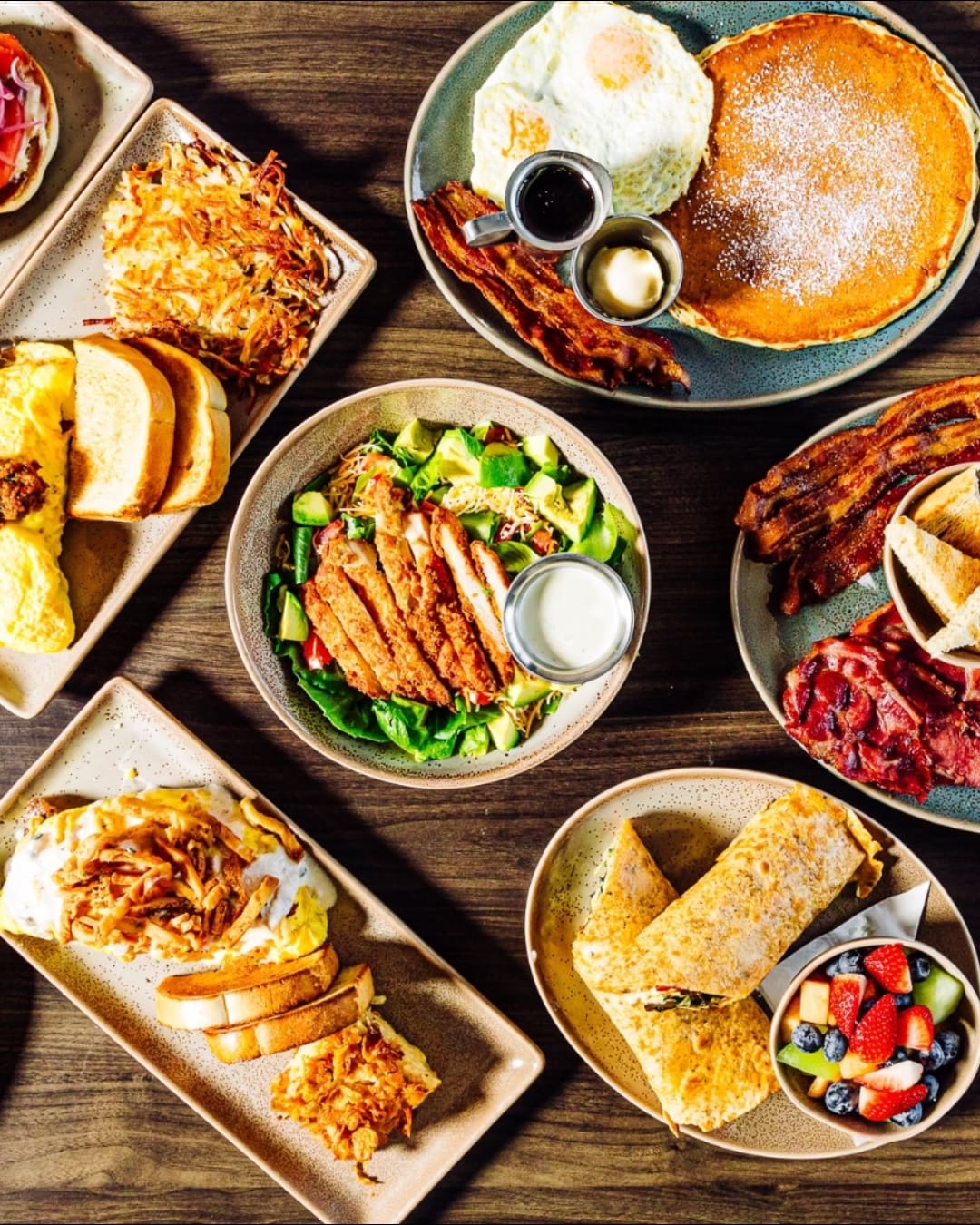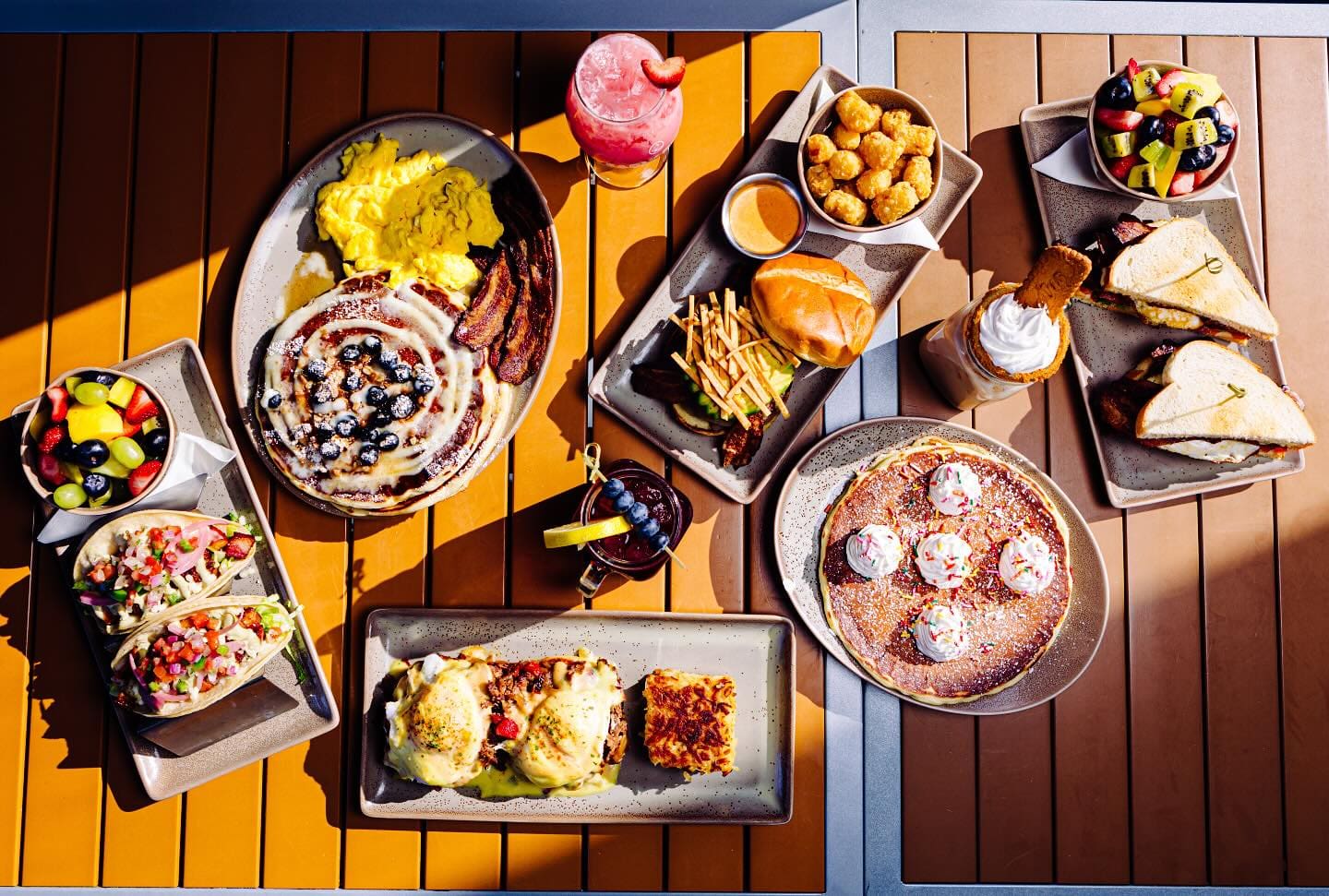 The menu offers breakfast, brunch and lunch every day. The restaurant describes it as “creative twists on diner classics,” including signature cinnamon roll pancakes, elevated breakfast sandwiches, Benedicts, omelets, waffles and other breakfast items in addition to lunch options such as a burger or chicken sandwiches.