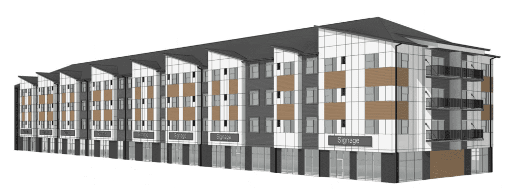 The first floor will be commercial, with about 40,000 square feet, and the upper floors will be a mix of studio through three-bedroom floor plans.