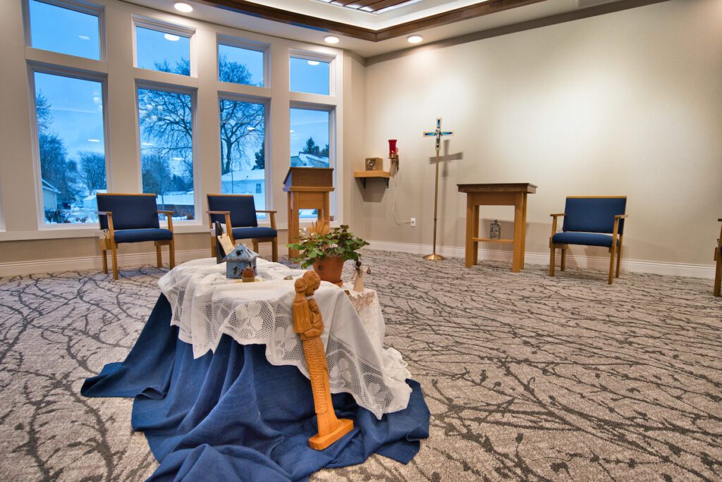 Off the entry is a large chapel, where “it’s wonderful to gather and pray,” Thomas said. “And it’s going to be lovely next spring and summer to really look out onto the garden and see the beauty of nature coming into our space.”