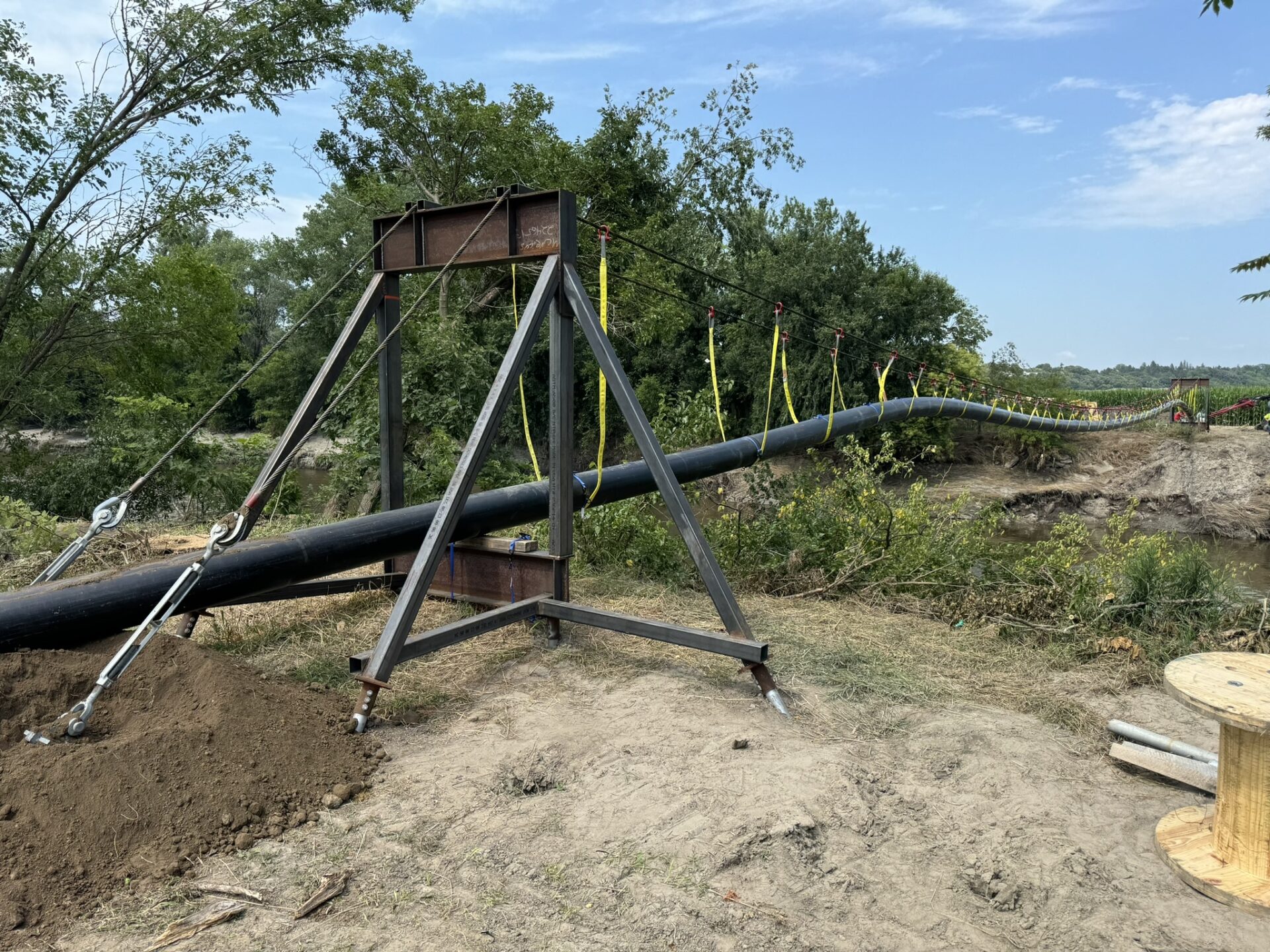 The bridge spans 185 feet and carries a 12-inch HDPE pipe.