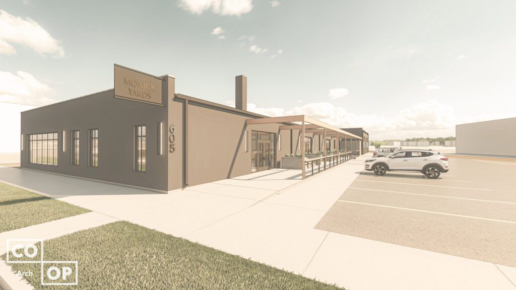 Monick Yards will offer two defined spaces and be able to accommodate up to 400 guests for a sit-down event, in addition to a patio.