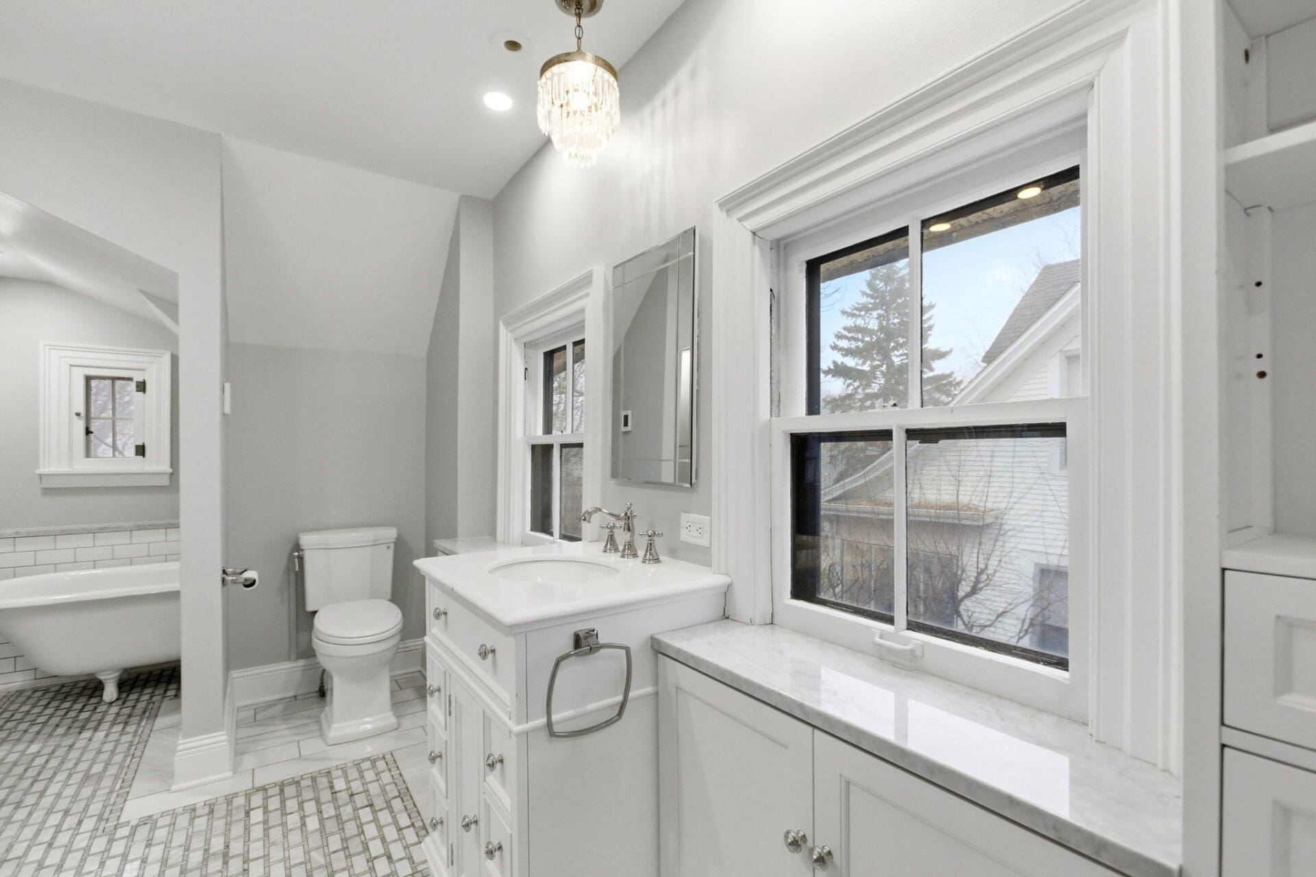 Numerous original French doors flow between the formal dining room, living room and sunroom, giving the flexibility of an open, connected main level or intimate, defined spaces depending on the occasion.