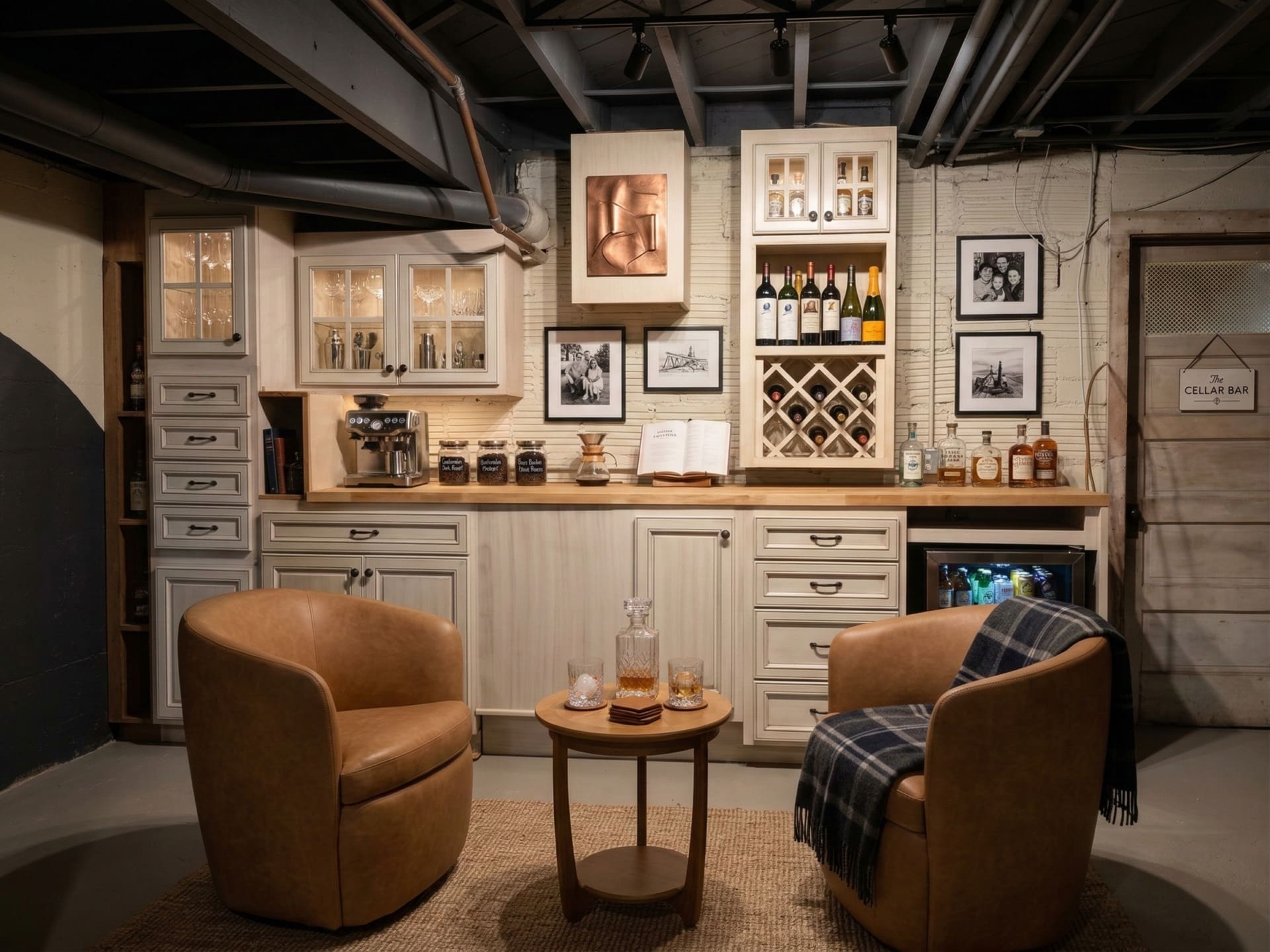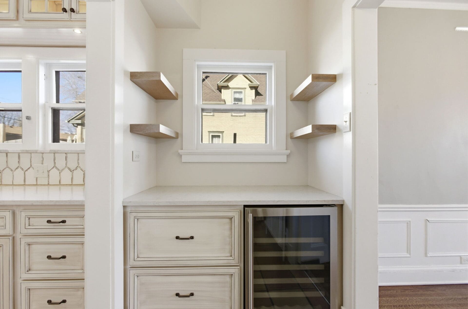 The partially finished lower level is an entertainer’s dream, complete with a dry bar, wine cellar and extensive built-in shelving for storage.