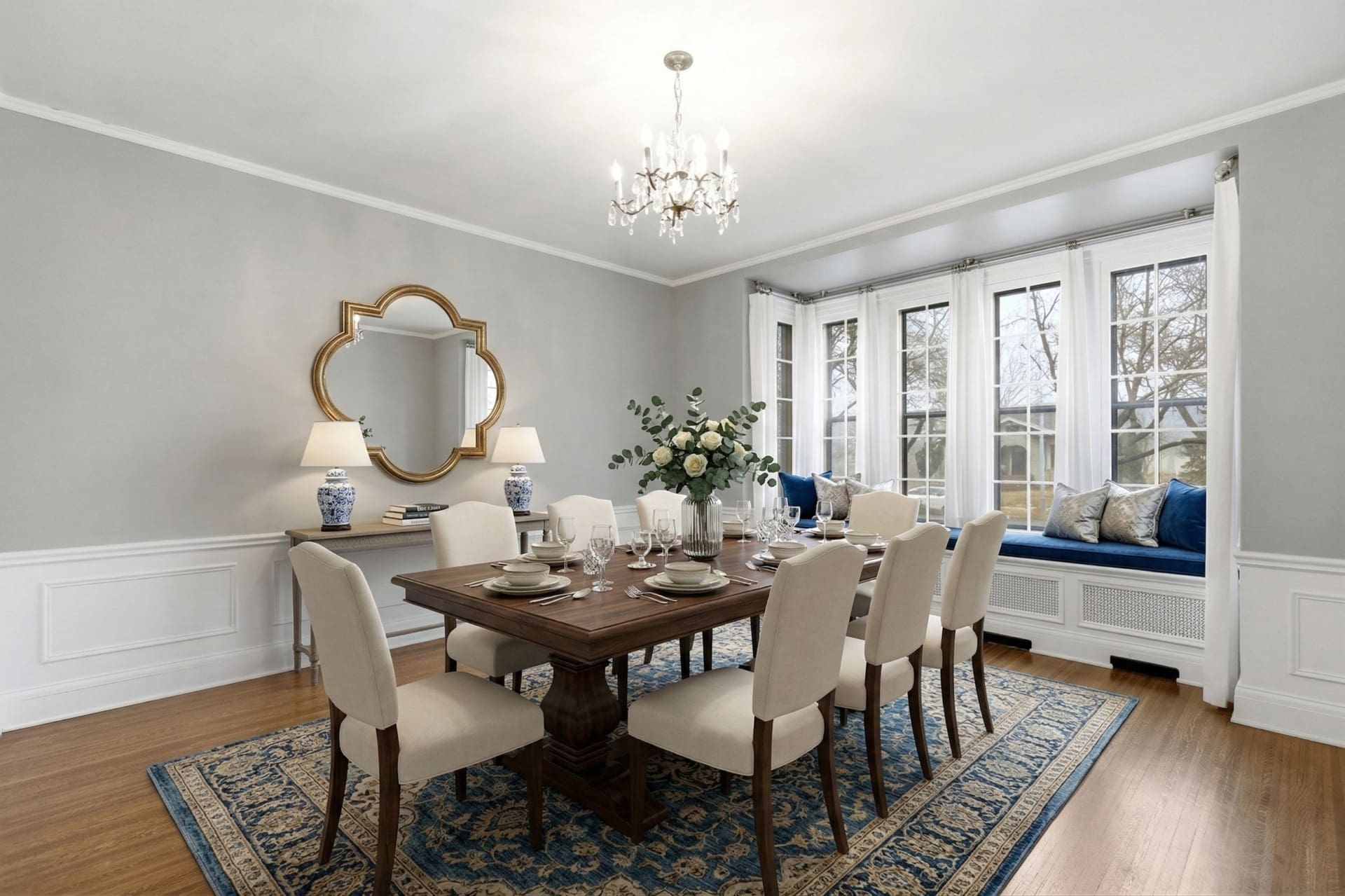 “You’ll love hosting in the formal dining room, which features a stunning bay window, filling it with natural light. There’s also a window seat that nearly extends the full length of the room,” Stockberger said.