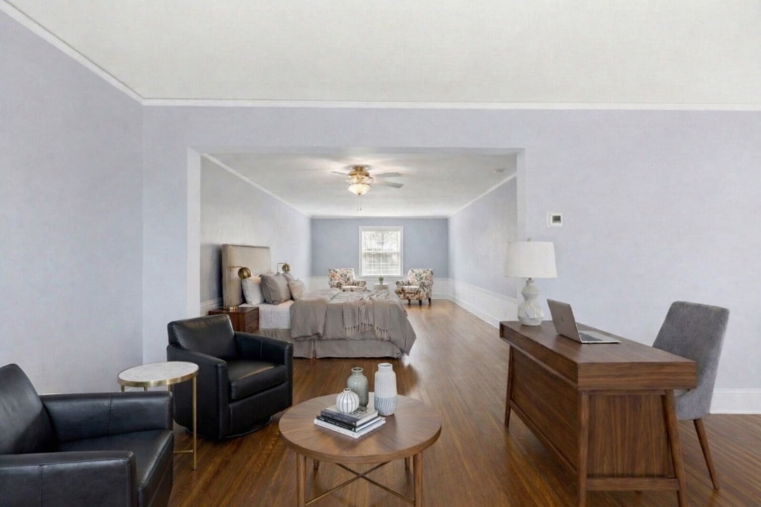 The fourth bedroom — the original maid’s quarters — offers its own private sitting room and a fully updated en suite bath, perfect as a guest suite, in-law space or luxurious private office.