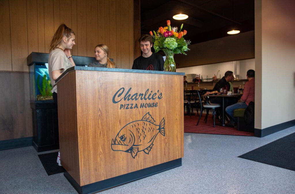 Charlie’s won’t take reservations, but with seating for 160 customers and two pizza ovens, Rezac anticipates being able to “turn tables relatively quickly.” But these aren’t ovens that cook pizzas in seconds. As the menu cautions, “Please allow 30 minutes oven time for each pizza.”