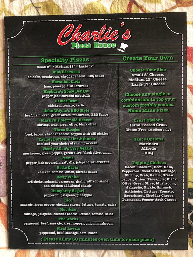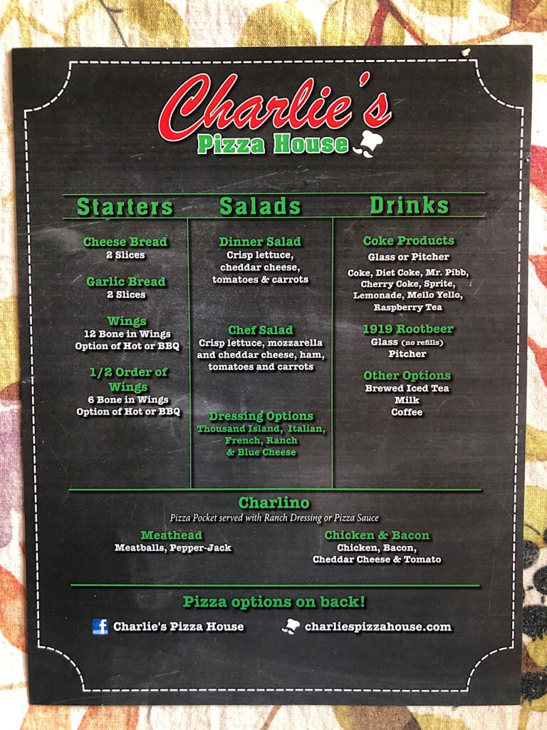The pizza offerings are identical to Charlie’s in Yankton.