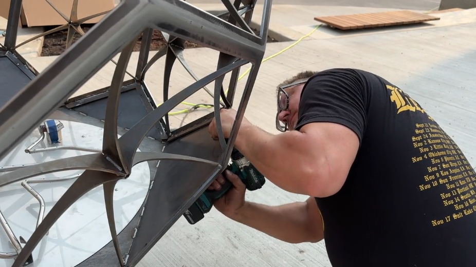 It also doubles as a fire pit that will rust as it burns to create a final color.