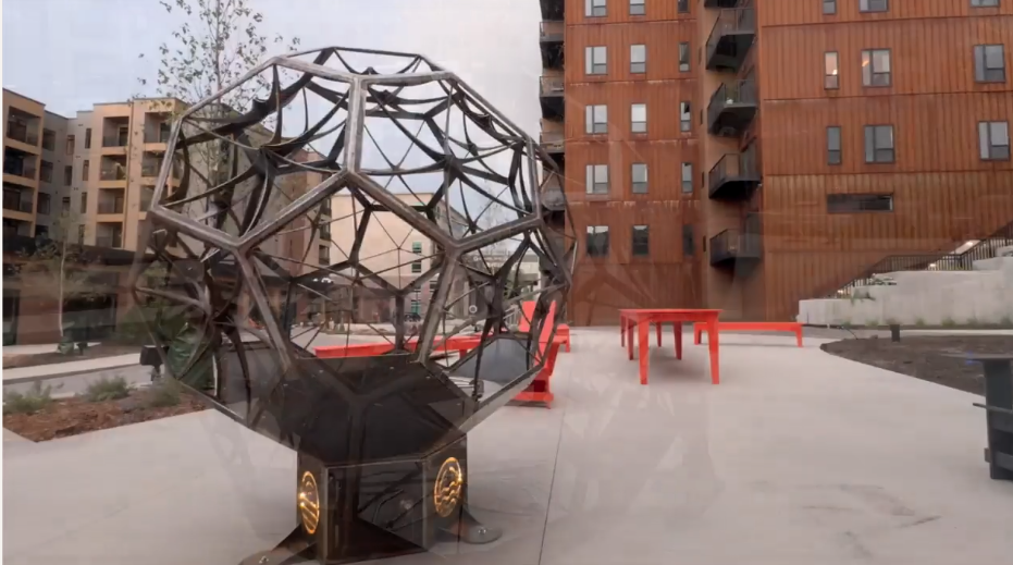 In the Cherapa Place courtyard, new artwork from Twin Cities artist Atom Pechman is called Cherapa Fireball, a steel piece that stands 74 inches tall and 63 inches across.