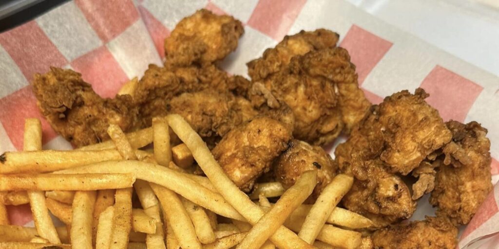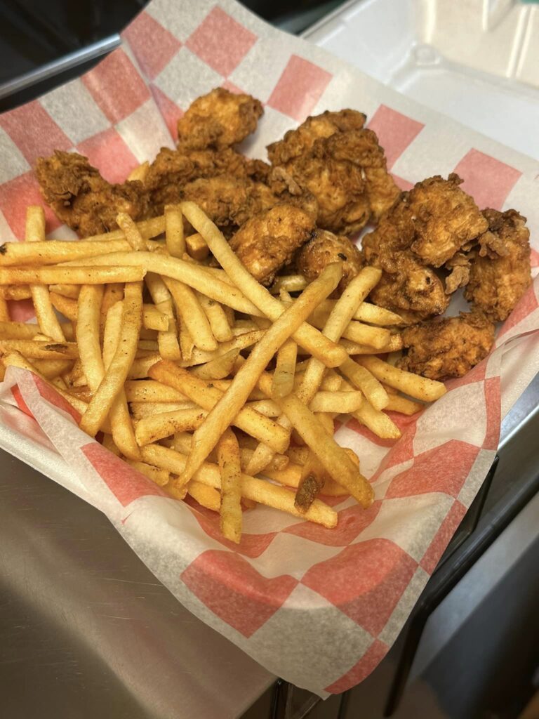 The Flock section of the menu features chicken sandwiches, tenders, wings and “nuggies,” his play on chicken nuggets for grownups that are hand-cut and hand-breaded.