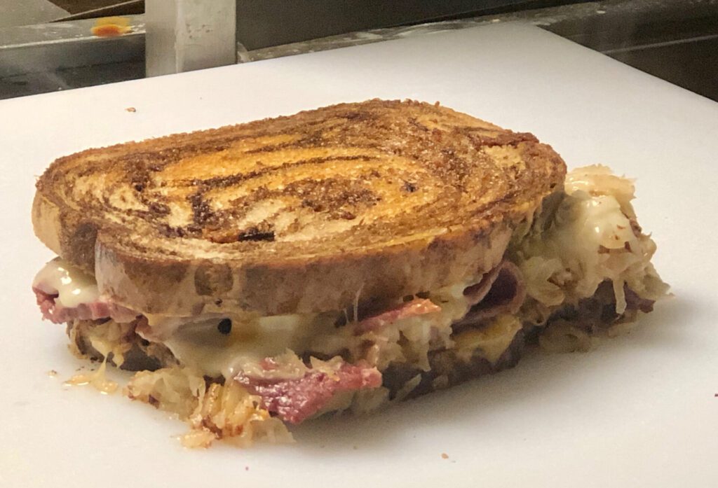 There are hot dogs and sandwiches. Leonard’s version of a reuben is called The Penny in honor of his grandmother who died last year. She was a veteran and so is Leonard.
