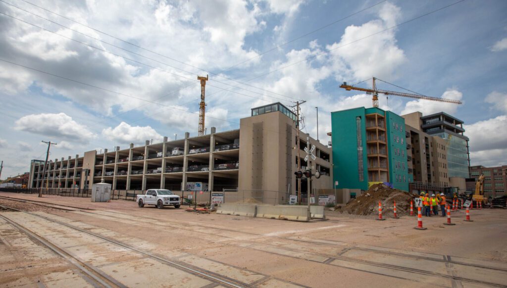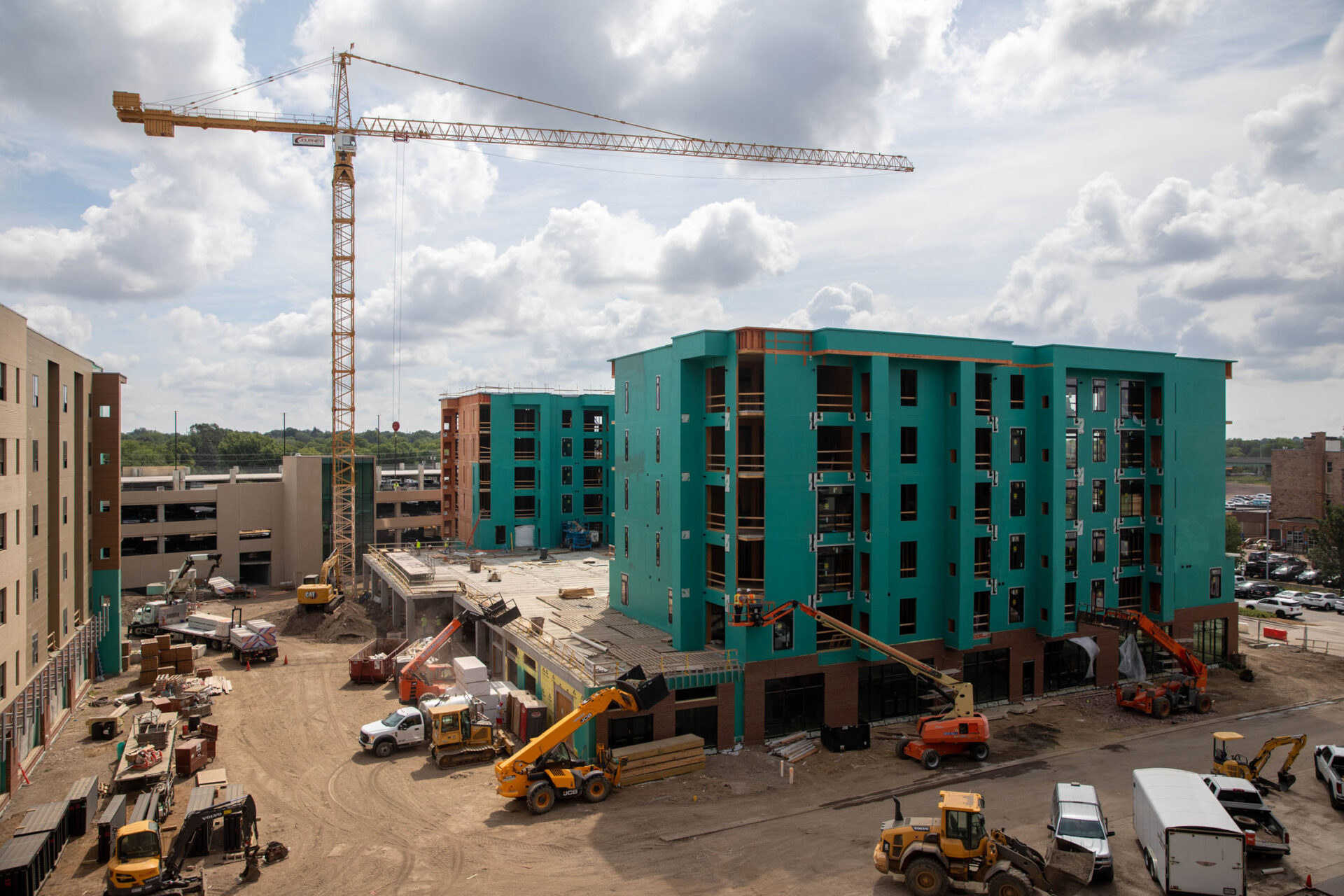 Progress also is underway on buildings three and four, which will include first-floor retail and mass timber apartments above.