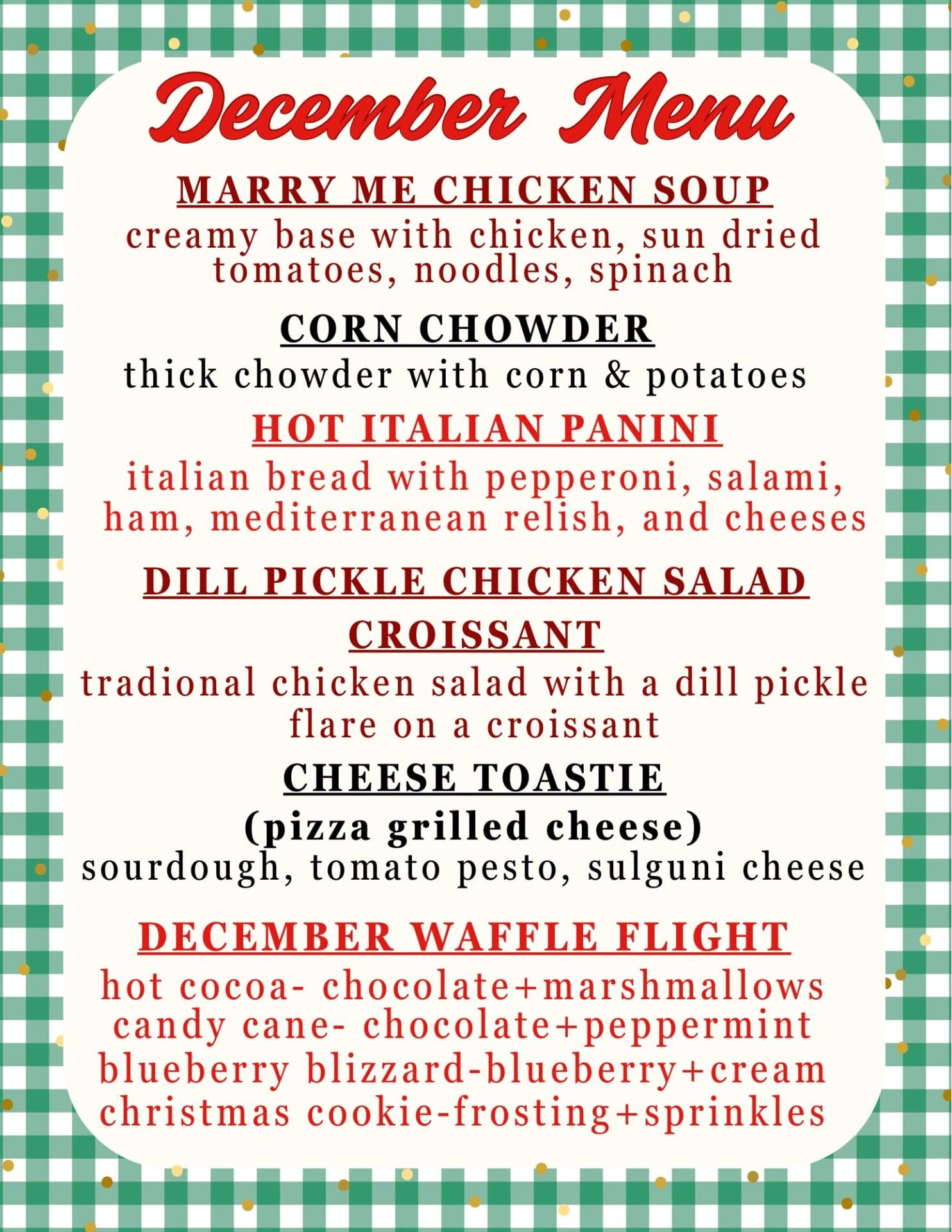 While you’re shopping, stop in for an artisan coffee or gourmet waffle.
