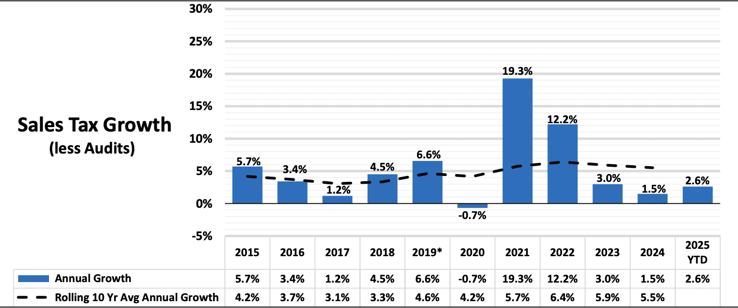 Sales tax revenue in the October report, which mostly represents sales in September, was up 7.4 percent month over month.