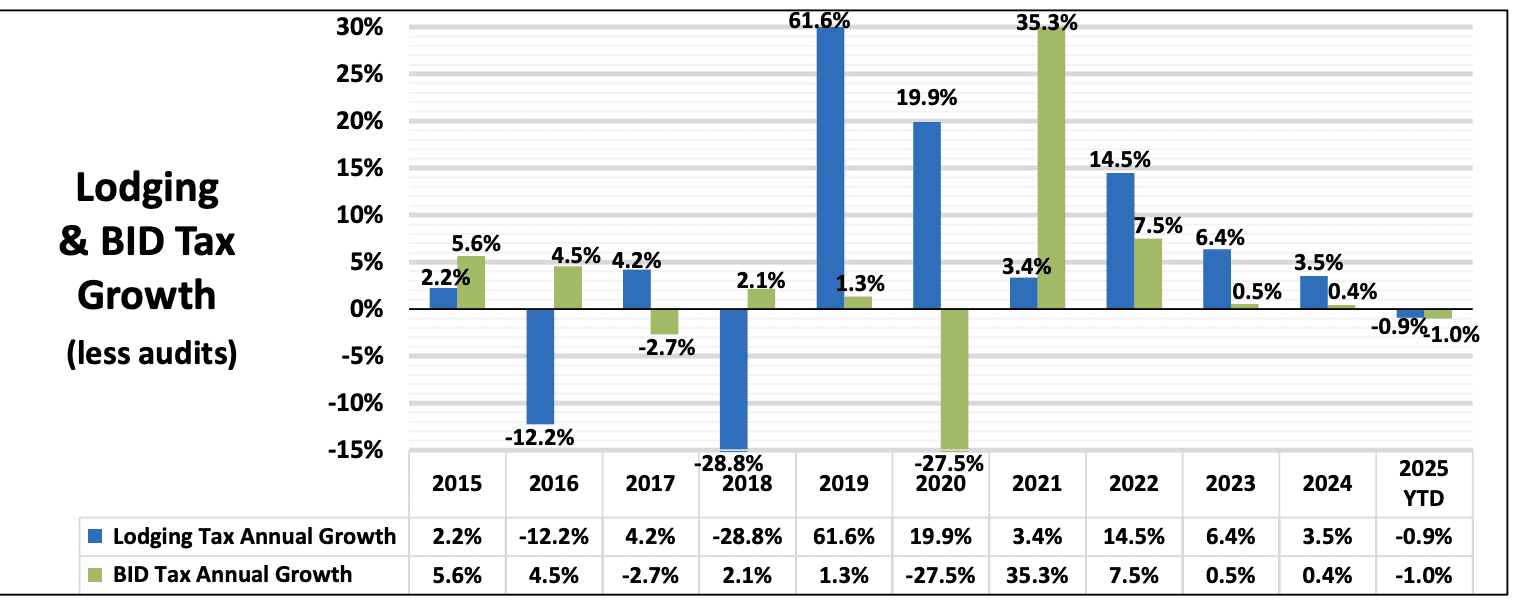The lodging tax continued to lag slightly behind last year.