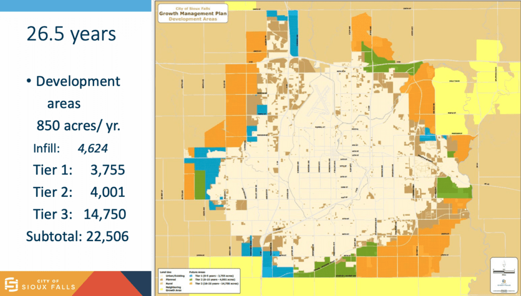 The current pace of 700 to 1,000 acres annexed annually means Sioux Falls is well positioned to accommodate short-term needs in its tier one growth area, which is identified as 5,500 acres.