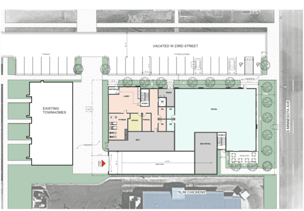 The investment group, led by Dr. Jonah Luzier, is planning a four-story retail and apartment project at 23rd Street and Minnesota that would include underground parking.