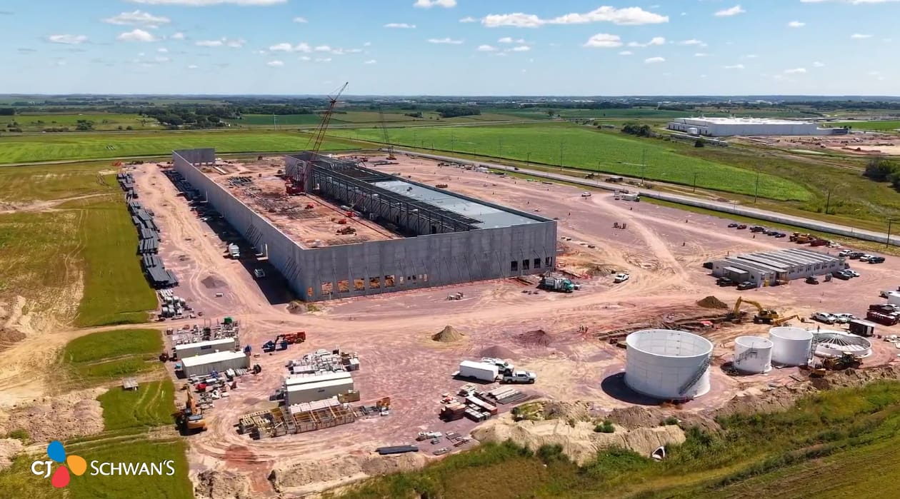 CJ Schwan’s broke ground in November 2024 on its 142-acre production facility in Foundation Park. The company estimates 55,000 hours of work have been completed so far. Most of the production facility’s walls are up, and the goal is to enclose the production space by the end of the year.