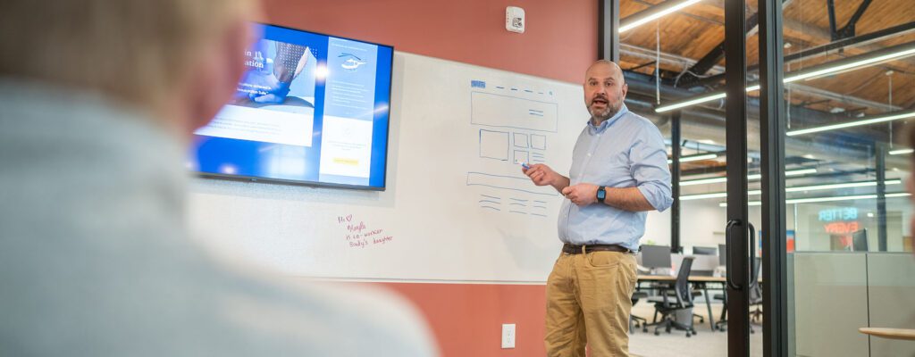 McElrath started at Click Rain five years ago as a senior designer. Through his love for storytelling and design, he was able to move up the ranks to his role now, where he oversees the creative department: a full-scale team producing video, graphic design and content writing.
