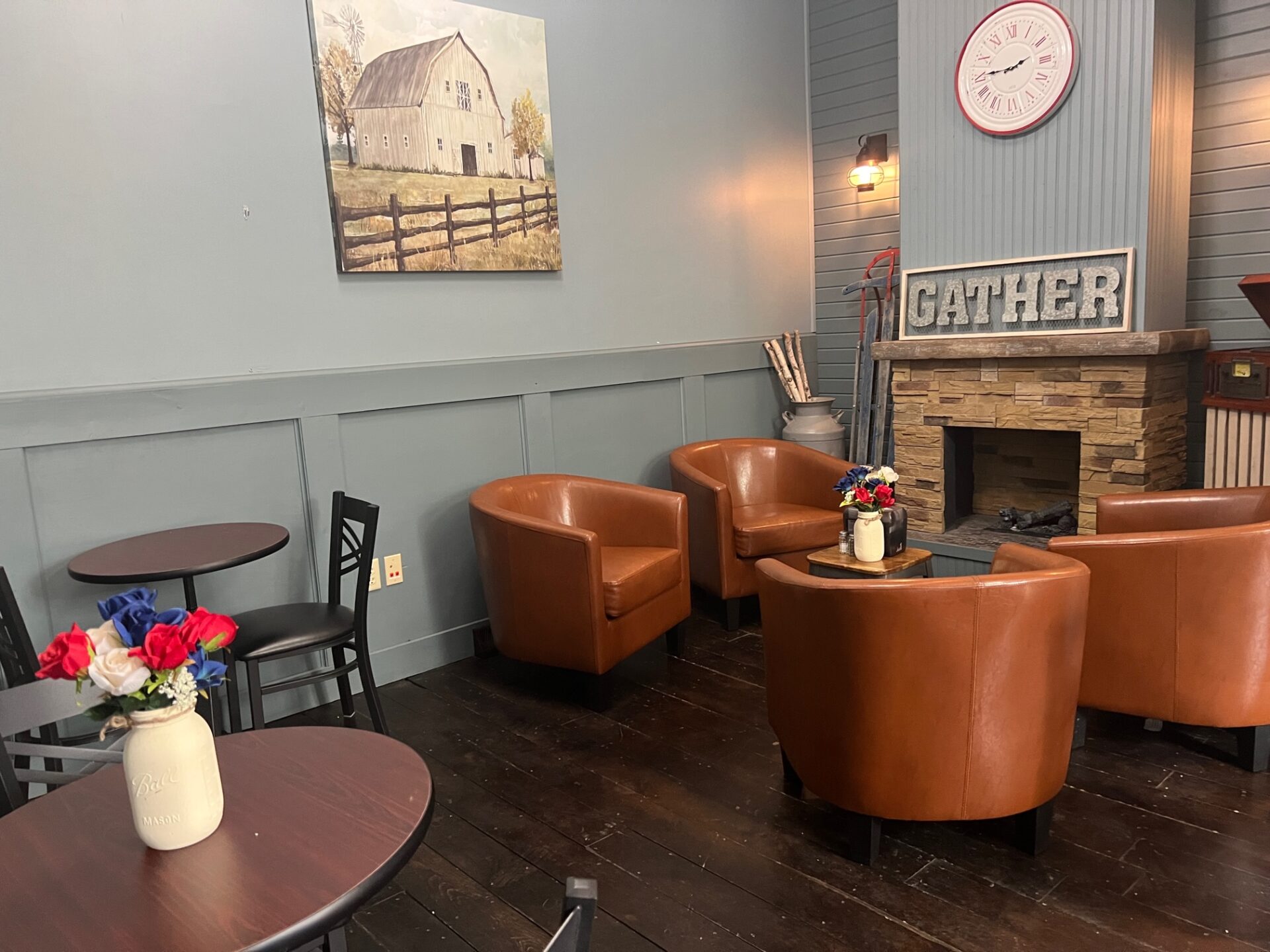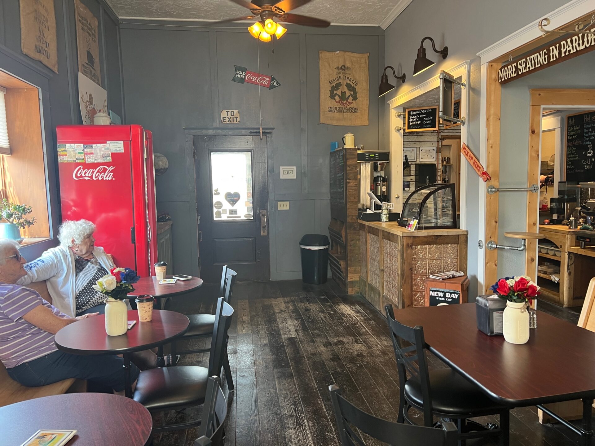 Both visitors and locals have supported the coffee shop. Multiple seating areas often host groups.