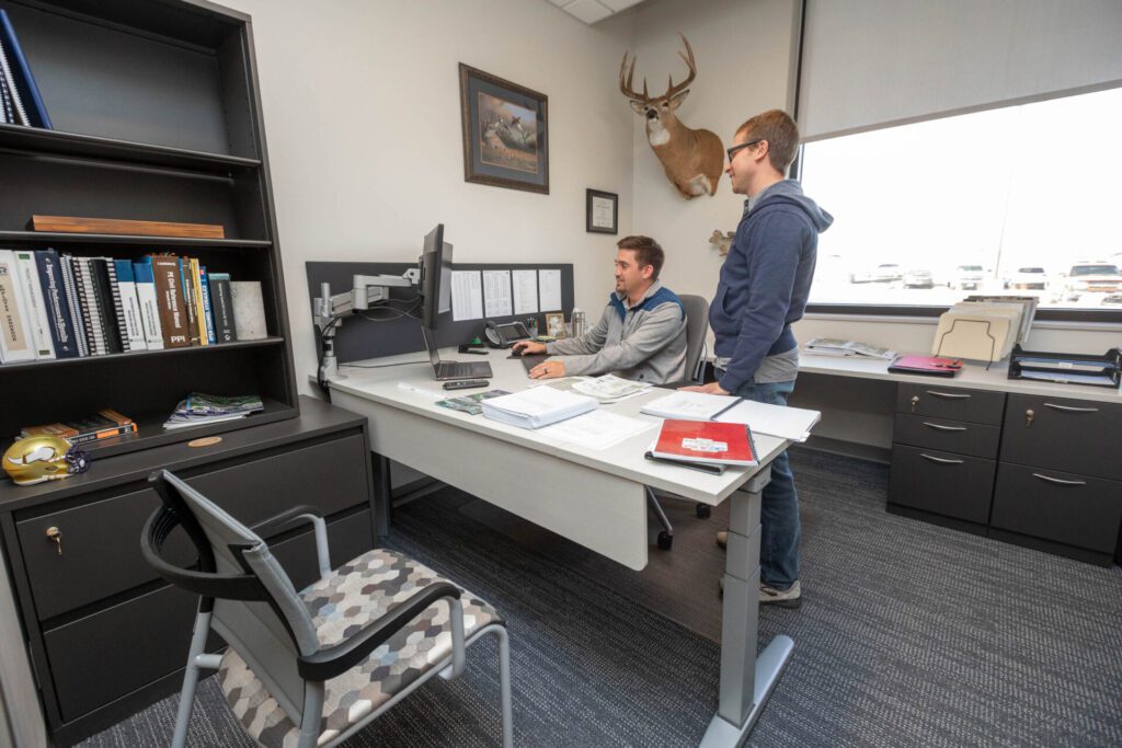 “We went from having room for 12 to 20 people with one expansion, but then we grew our staff to 30 full-time employees, so we moved a bunch of stuff into a garage to give us extra room. This past summer, including all the interns, we had 38 people operating out of our office, and we were putting people to work on folding white tables,” said Trent Bruce, vice president and Sioux Falls office manager.