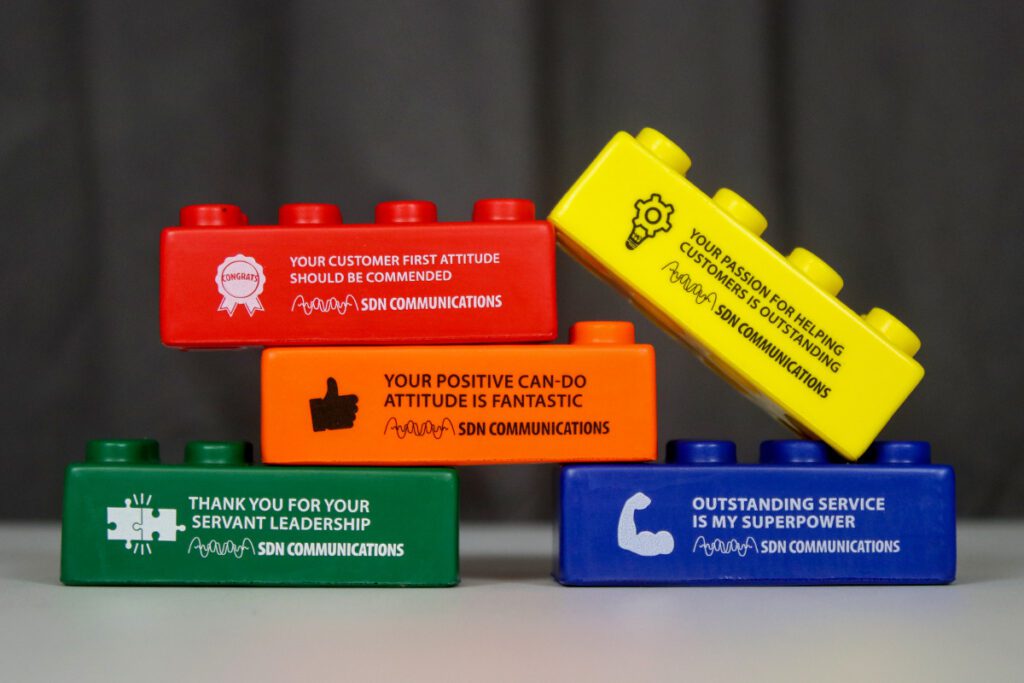 One way SDN creates positive culture is through the Service Beyond Expectation program, which helps acknowledge employees. They’re recognized with colored, foam building blocks representing the core values.