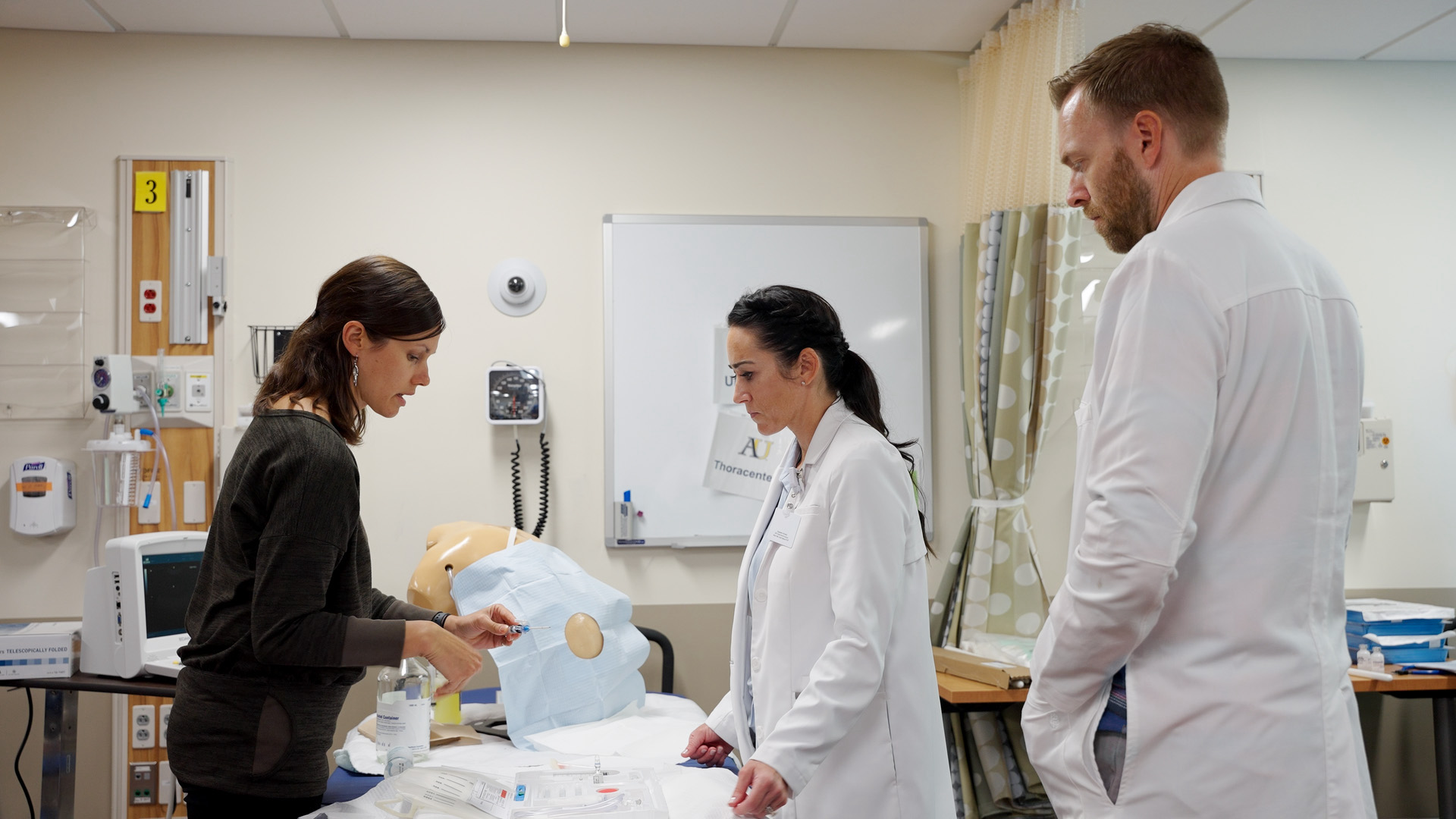 “Hands-on learning is unique at Augustana,” said Pam Barthle, Augustana assistant professor of nursing and assistant program director of AG-ACNP. “Many MSN programs have no hands-on component. So we really have a unique advantage to offer our students that opportunity and to have experienced faculty here to teach them skills and procedures.”