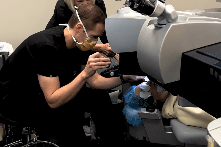 LASIK surgery typically takes about under 10 minutes per eye. Numbing eye drops are used, and most patients experience little to no discomfort. Many of Vance Thompson Vision’s LASIK patients notice improved vision immediately after surgery.