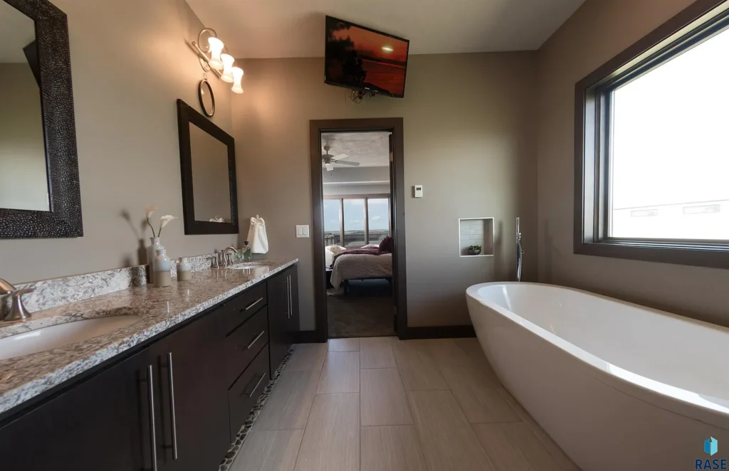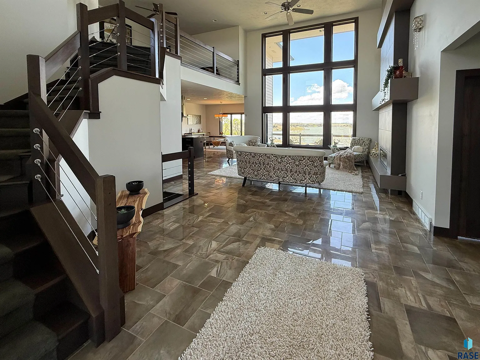Located at 26183 Sunset Bluff Drive east of Canistota, this five-bedroom, three-bath custom home spans 4,113 square feet.