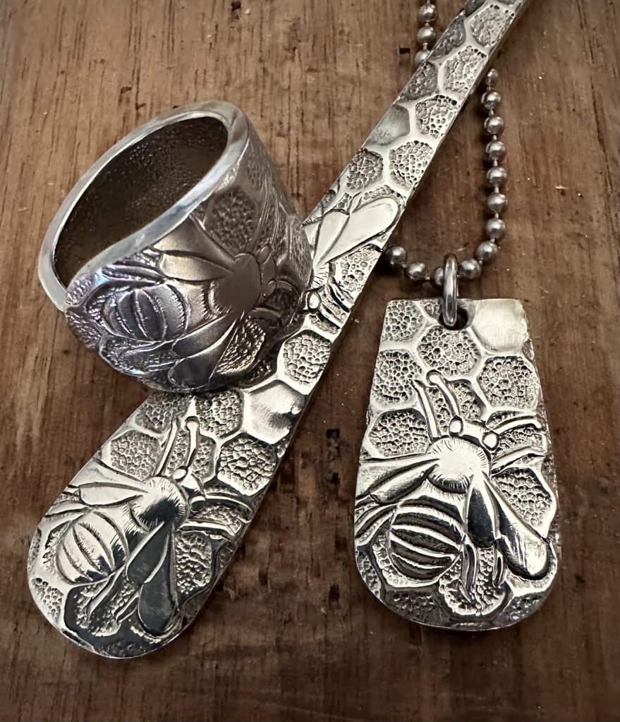 Weeks doesn’t just make jewelry, she also has made refillable pens out of knife handles, plant pokes, ornaments and wedding cake forks.