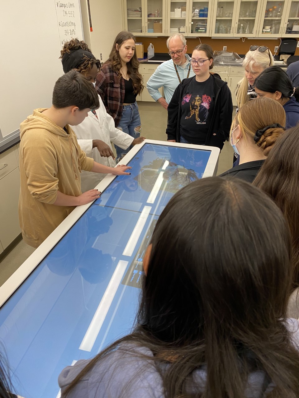 Each campus visit centered around one of the four quadrants of the Circle of Courage Model — created in 1990 by three Augustana professors, one of whom is Brokenleg’s dad. The Circle of Courage — the framework for Augustana’s Sharon Lust School of Education and Teacher Education Program — is a model of youth development based on the principles of belonging, mastery, independence and generosity. The students visited the model classroom in the Madsen Center, Anatomage Virtual Cadaver Table in the Froiland Science Complex, Midco Media Center and Edith Mortenson Center Theatre.