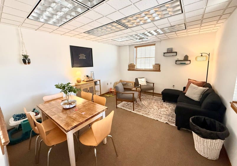 The meeting space is design to feel like a living room to welcome mothers’ groups and Bible studies.