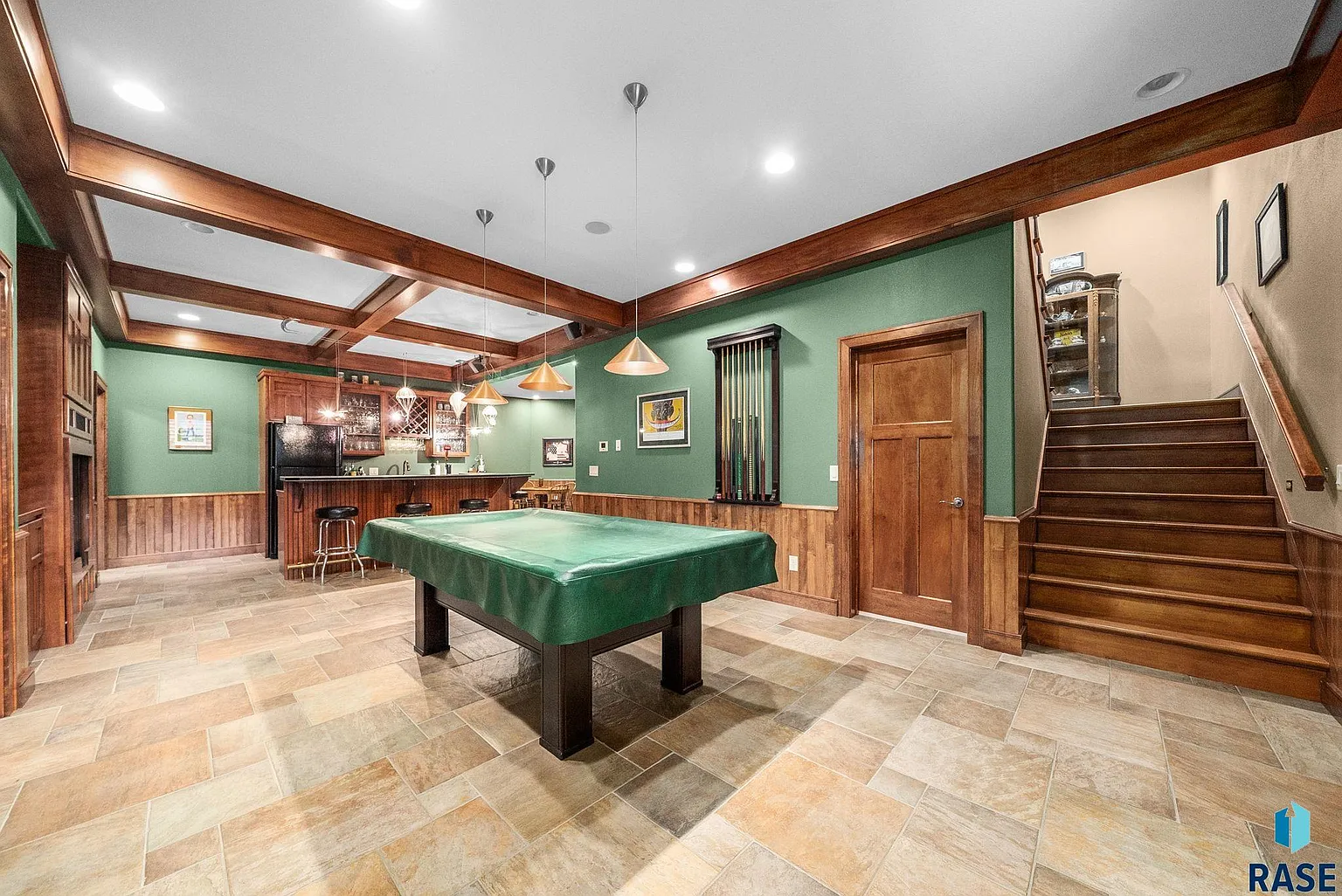 The lower level features a second laundry area, and the home includes a cedar closet and pool table.