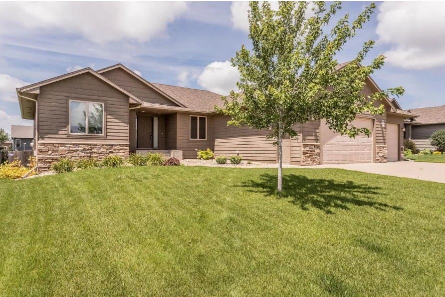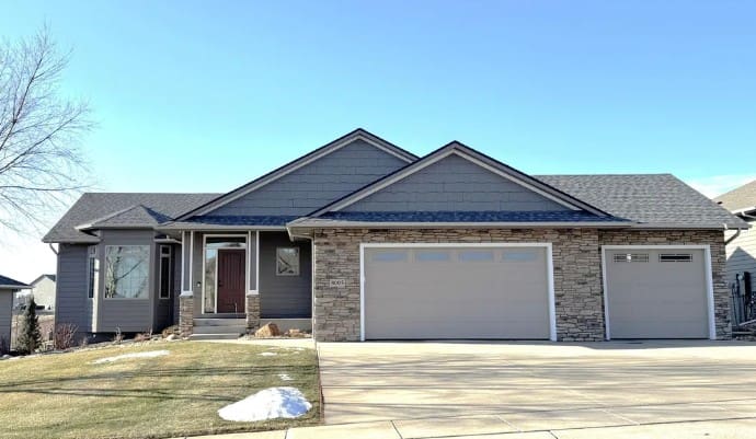 Oakland Homes built the zero-entry ranch walkout house in 2025 in The Sanctuary development on the eastern edge of the Sioux Falls city limits, overlooking the Big Sioux River valley. The 5,000-square-foot house has five bedrooms and five bathrooms. Features include 10-foot ceilings throughout, a chef’s kitchen, a screened-in covered deck and a covered courtyard area at the front of the house with a gated entrance. The extra-deep four-stall garage is heated and includes a dog-washing station. The backyard has two paver patios.