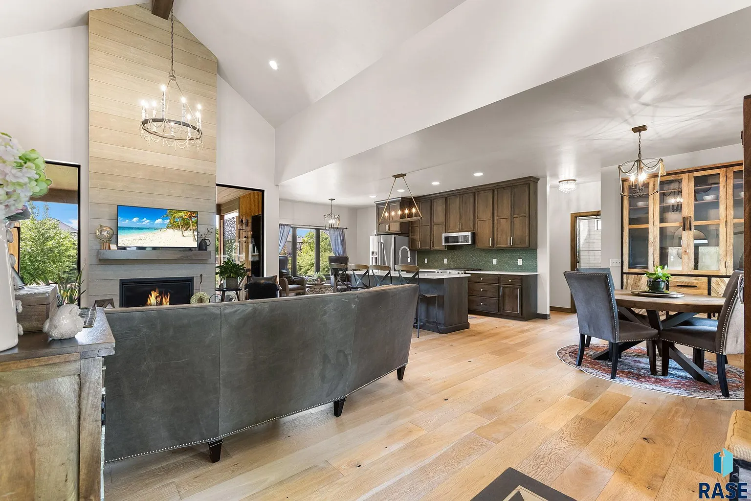 “The design is exceptional in this home, from the soaring ceilings to a dramatic floor-to-ceiling fireplace that serves as the focal point of the living room,” listing agent Amy Stockberger said.