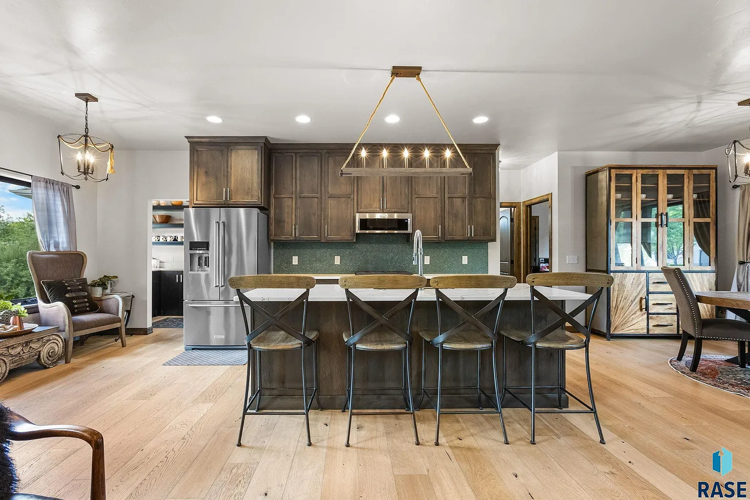 “This space features warm wood cabinetry, gleaming quartz countertops, a top-tier appliance package and a chic green tile backsplash,” Stockberger said.