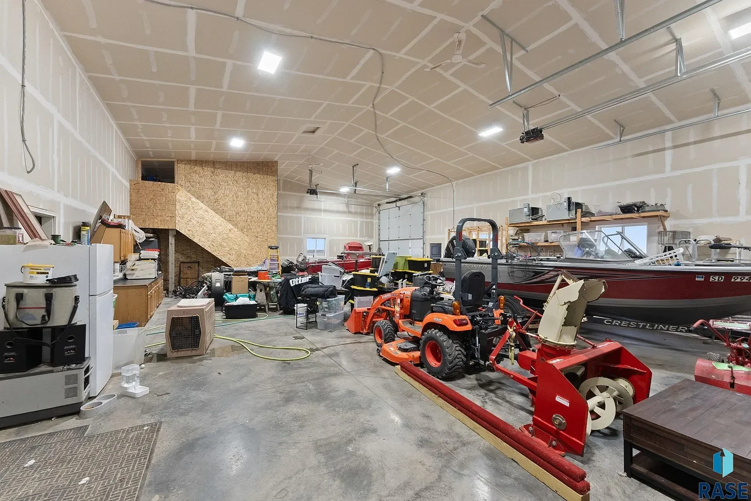 “The property includes a heated eight-stall garage for vehicles and storage, so an outbuilding isn’t even needed,” Hanssen said. “It’s 2,400 square feet and includes a mezzanine, water hookups, floor drain and tall doors for RV storage.”
