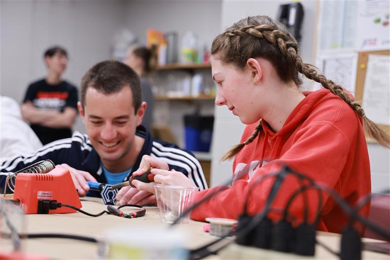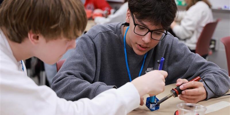 At Governors Cyber Academy outreach events, students work on programming and software projects but also work hands-on with techniques such as soldering.