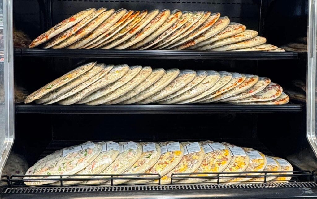 Handmade pizzas are baked in-house or available as take-and-bake.