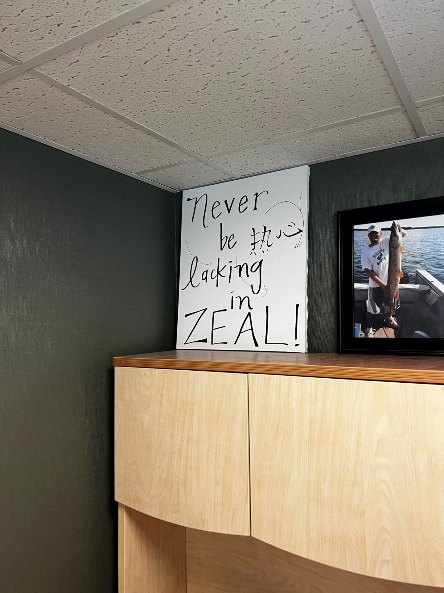A third reads, “Never be lacking in zeal,” which signifies the importance of “finding what you’re passionate about and being all-in.”