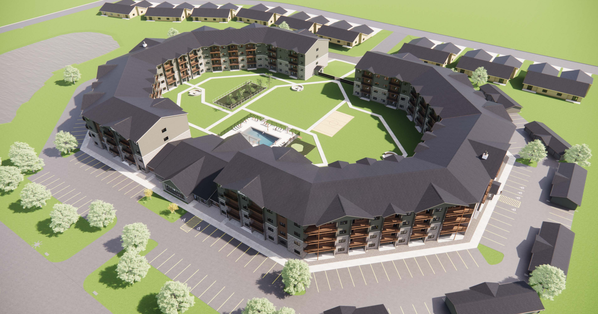 Sage Meadows, for instance, will include a center courtyard with a swimming pool, turfed dog park, putting green and potentially a sand volleyball court. The units are scheduled to open beginning late next year and continuing into 2024, bringing the developer’s portfolio to more than 1,000 units.