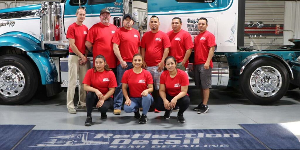 He credits this growth to marketing his business through his Facebook page but also the quality of his team’s work. They spend from 25 hours to even hundreds of hours detailing each semi inside and out.