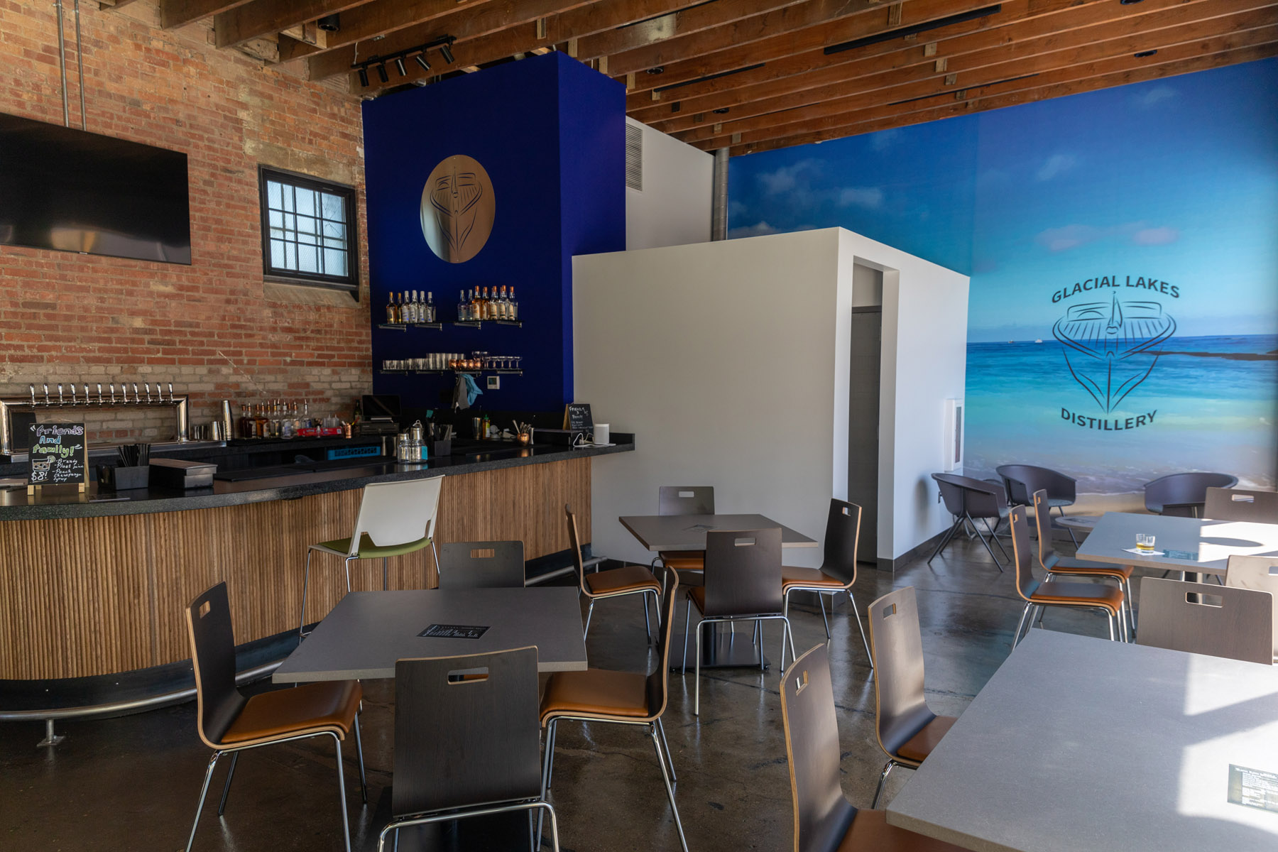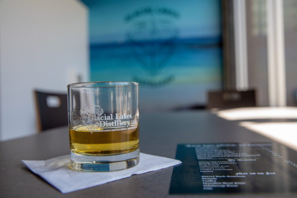 The opening menu features seven classic drinks and seven crafted cocktails, which are made with Glacial Lakes’ liquors: vodka, white rum, dark rum, gin, brandy – and its newest spirit: bourbon.