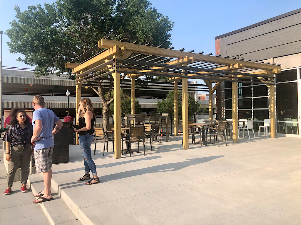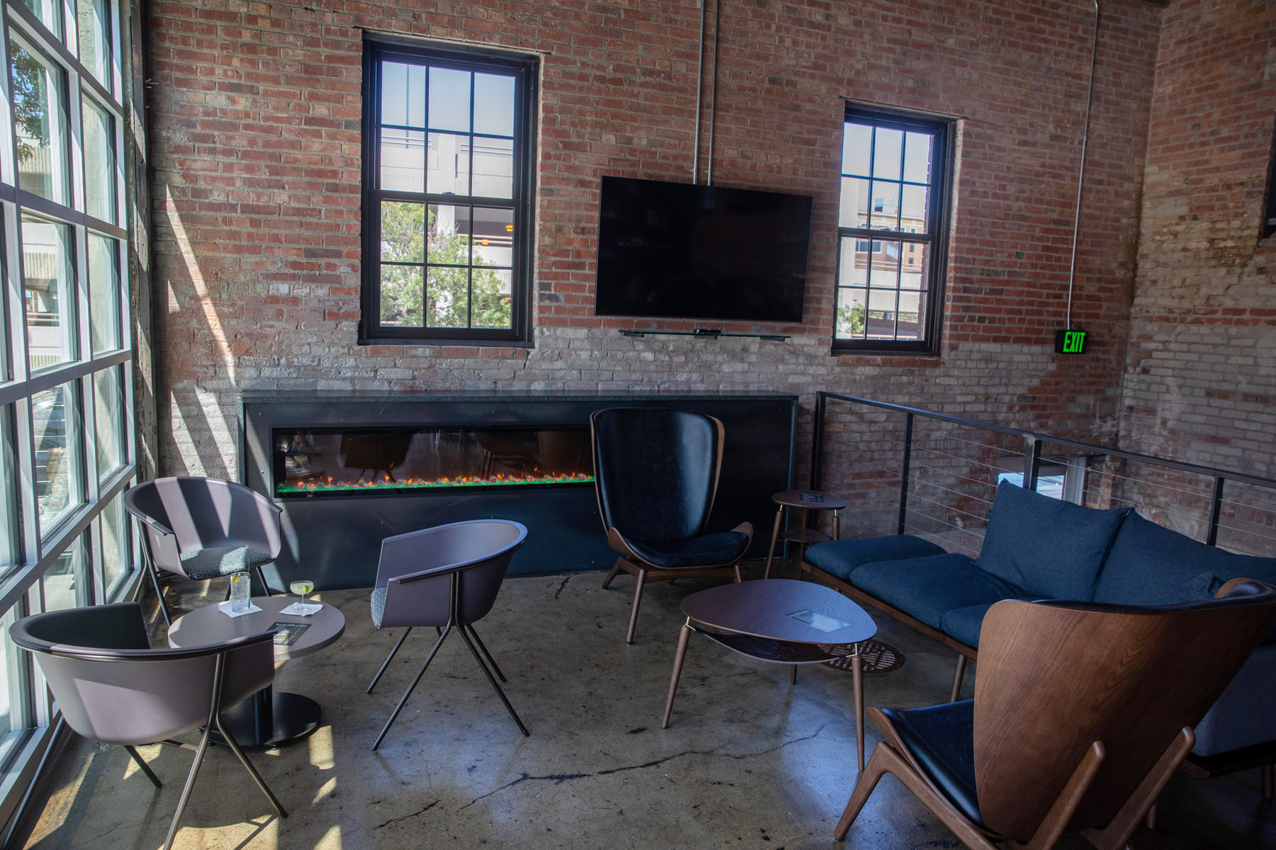 Eventually, all-glass garage doors will arrive, which will open out to the large patio that stretches from the building to the sidewalk.