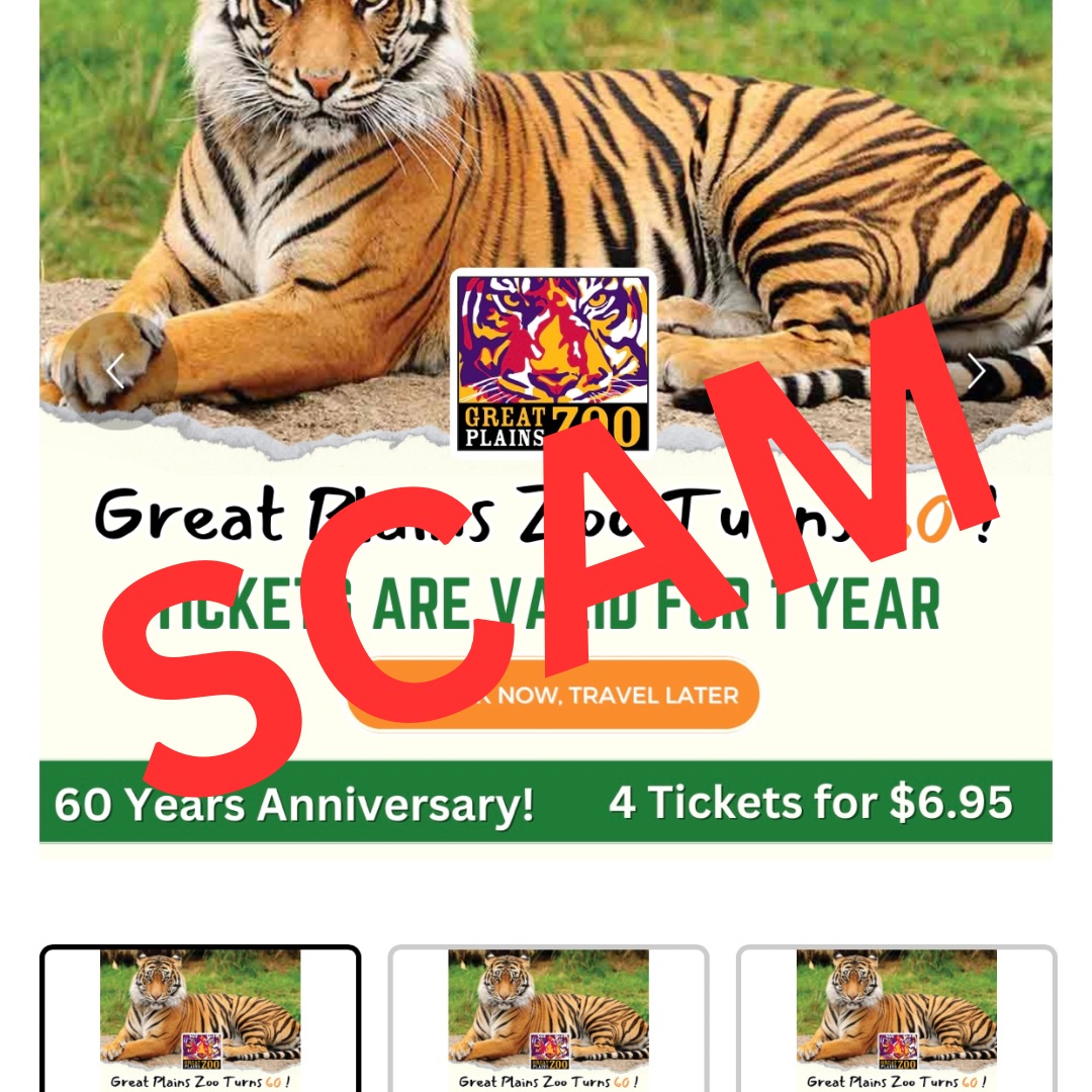 The Great Plains Zoo is the latest target of a scam circulating online that has tricked visitors into buying fake tickets.